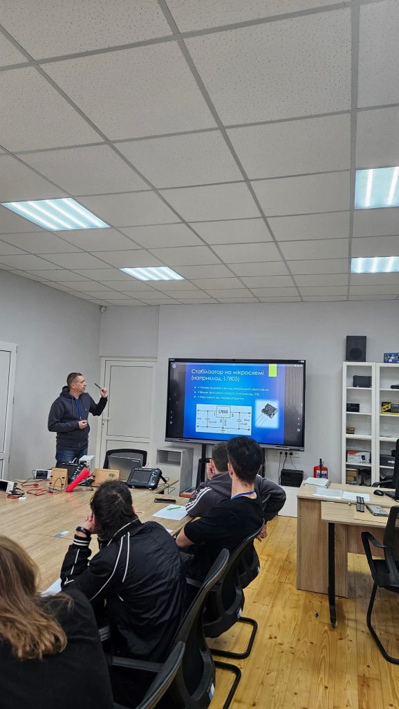 Технічна оснащеність: викладач ефективно використав усе наявне обладнання: демонстраційні стенди з БЖ, осцилографи, мультиметри та реальну елементну базу (трансформатори, діоди, мікросхеми 7805). Здобувачі освіти отримали не просто теорію, а візуалізацію процесів випрямлення, згладжування та стабілізації напруги.