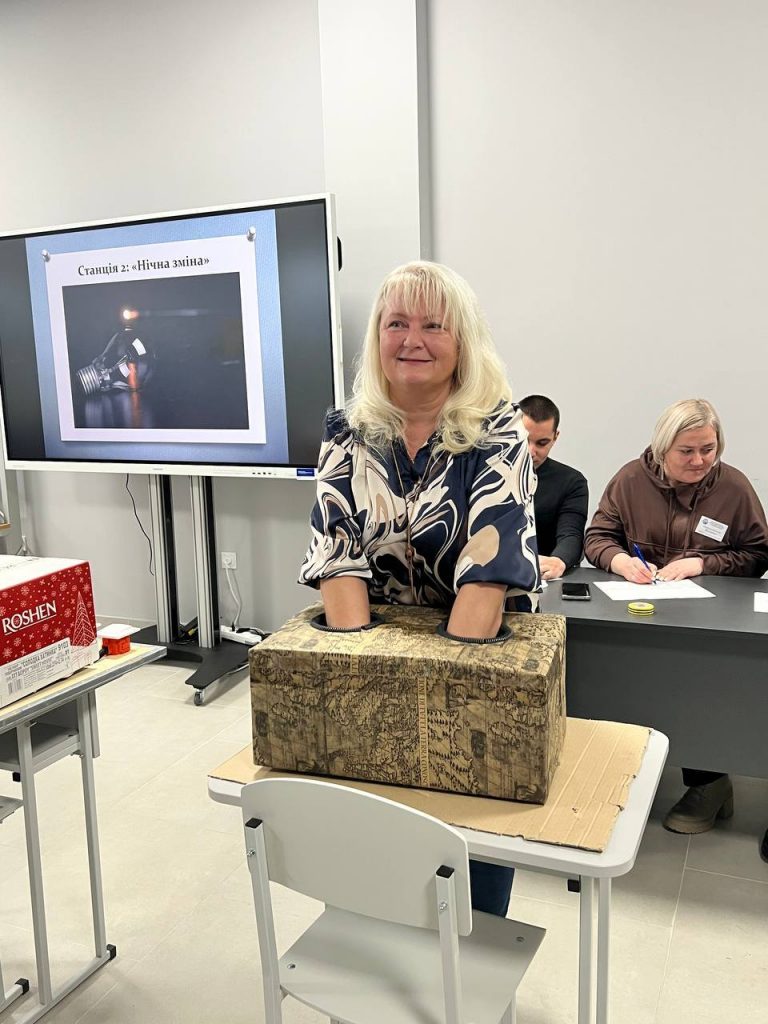 «Нічна зміна» — робота в умовах обмеженої видимості. Із зав’язаними очима майстри мали на дотик знайти діелектричні інструменти серед купи сторонніх речей.