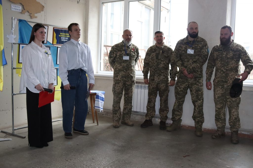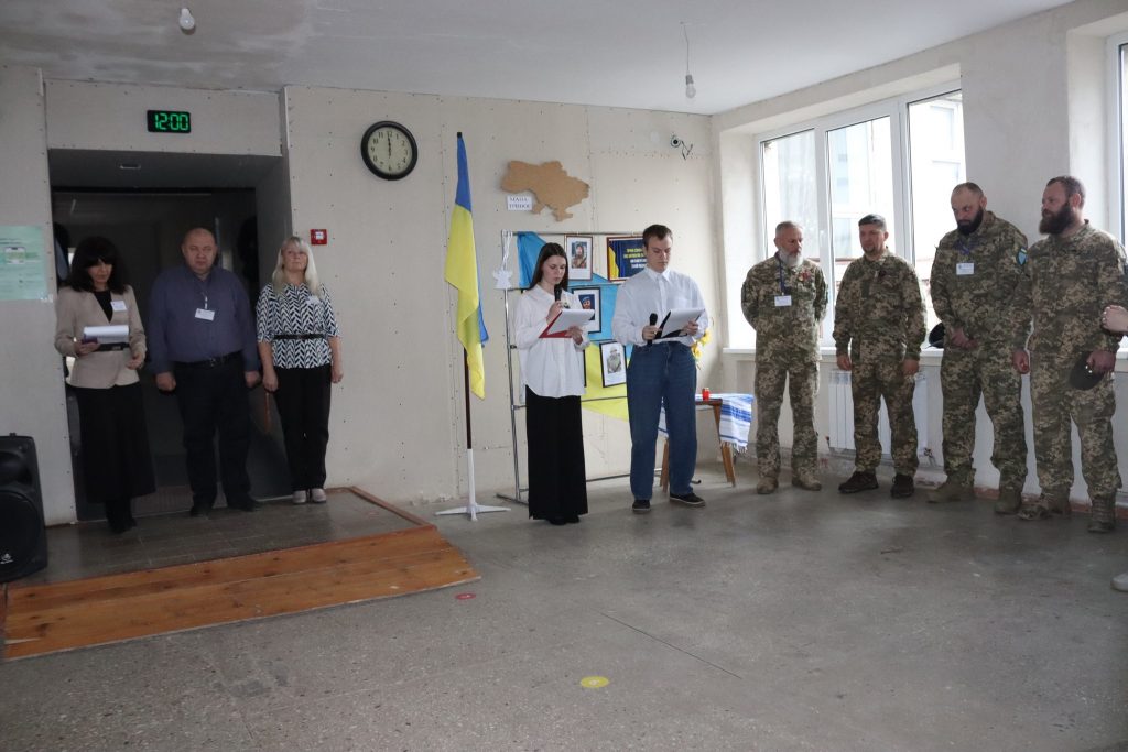 На лінійці були присутні викладачі “Захисту України”, ветерани російсько-української війни Шимоняк Ігор Миколайович, Звоздецький Валентин Миколайович, Пушкарук Дмитро Васильович та їхній побратим Роїк Іван Петрович, який ще продовжує службу як військового та як духовного наставника на передовій. О.Іван звернув увагу присутніх на те, як важливо берегти все українське – мову, культуру, віру, підтримувати українську армію та розвивати активну громадянську позицію та бути свідомими українцями.